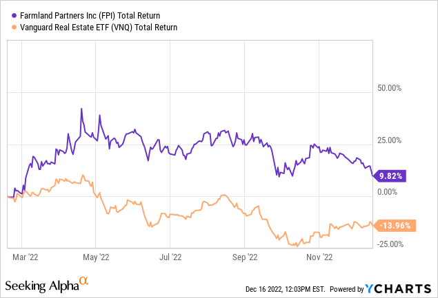 Instead, they are buying more farmland for their own portfolio and at times, they have had to issue equity at a discount to close these deals. This reminds me that during my last call with the CEO of FPI, he explained to me that they will at times close deals that are dilutive to NAV per share, but accretive to FFO per share since this is what the REIT market appears to care about. After thinking a bit more about it, I am not sure that this is the right approach because it essentially means that we won't fully participate in the upside of farmland in the long run.