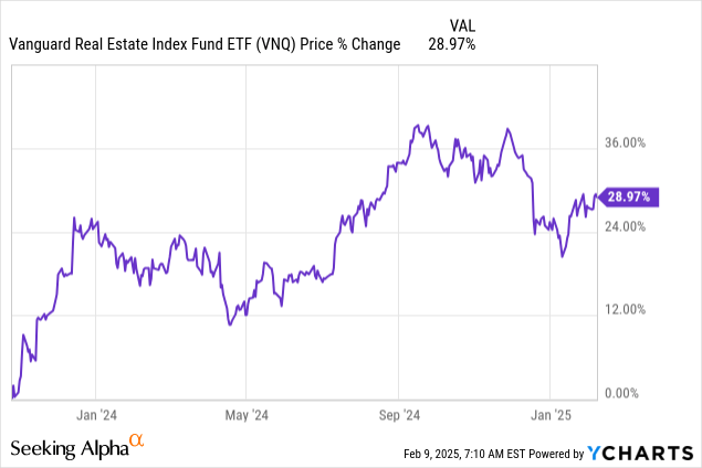 The US REIT market (VNQ) still presents a lot of opportunities, but it has already surged by ~30% on average since October 2023: