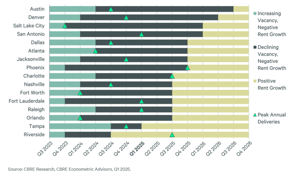 Third, fundamentals in BSR’s markets continue to be affected by the significant wave of new supply that was constructed in 2023 and 2024. Austin in particularly, has seen a massive wave of new development, which has led to widely-publicized declines in rents. While supply under construction has fallen significantly, there remains a large number of newly-built apartments that are leasing up through 2025 and likely into the first half of 2026, that will slow any rent growth.