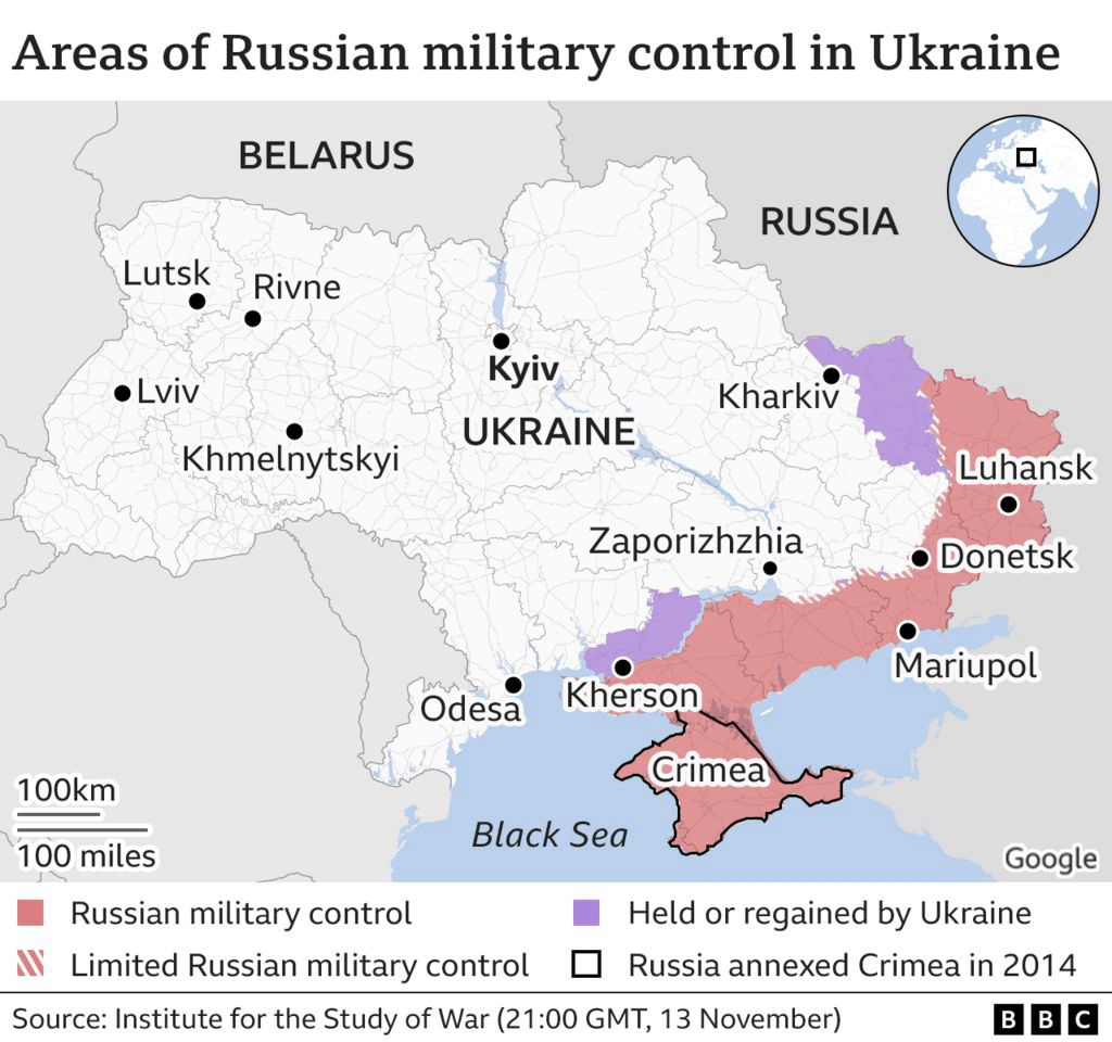Russia already lost the battle for Kyiv, Kharkiv, and Kherson, allowing Ukraine to retake about 50% of its lost territories since the beginning of 2022, and this has forced Russia to limit its military objectives to "liberating??" eastern and southern regions rather than occupying the entire nation:
