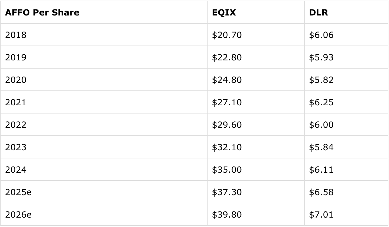 Hence why EQIX’s reported AFFO per share has grown so much faster than that of DLR: