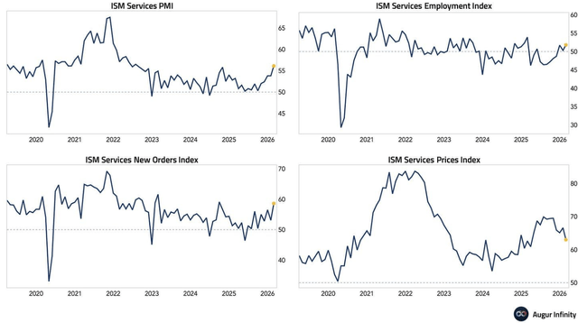 However, there are some signs of a potential reacceleration of growth in certain parts of the economy, such as ISM’s services surveys that are reflecting modest optimism for this year.