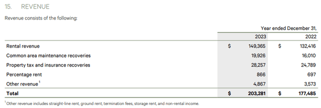 The reasoning for the rising payout ratio given by management on the Q4 2023 conference call was that leasing volume has been high lately and leasing/tenant improvement costs are eating into AFFO.