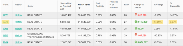 [Cohen & Steers increased their position in ADC by ~45% in Q3, equivalent to about $162 million in market cap.]
