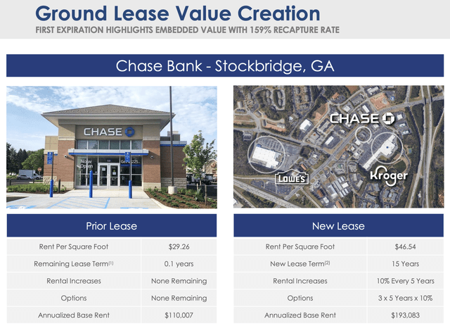 It will then release the land, plus the building, at materially higher rates, just like it recently did with this Chase Bank, resulting in a 159% recapture rate: