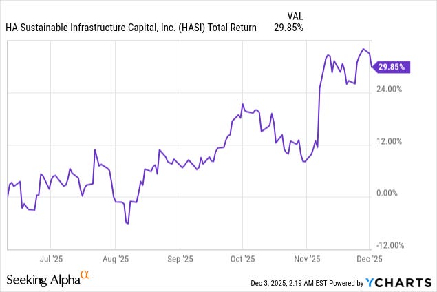 Earlier this year, we initiated a new position in HA Sustainable Infrastructure Capital (HASI) as part of our Core Portfolio.