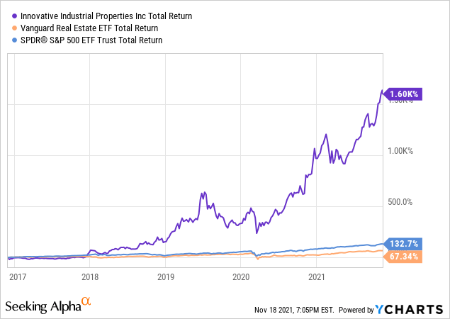 One of the most rewarding REIT investments of all time has been Innovative Industrial Properties (IIPR).