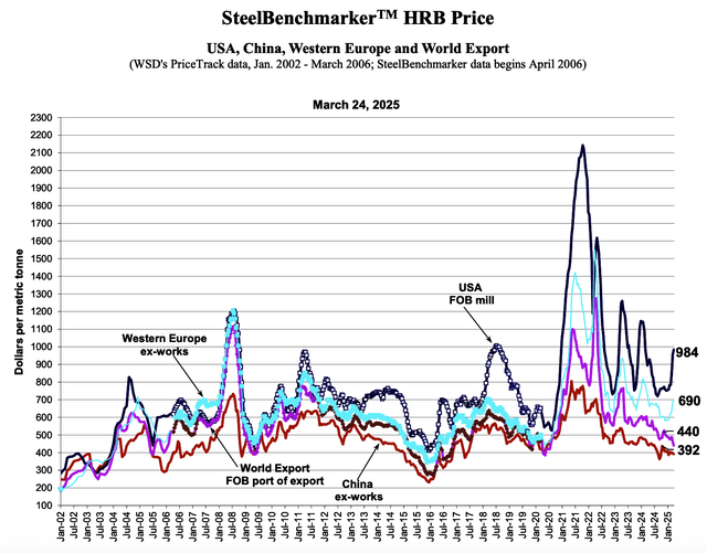 Buyers of steel in the US are currently paying more than double the average buyer around the world is paying.