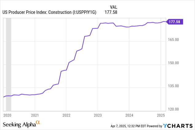 Construction costs have already increased significantly over the last five years as a result of COVID-related shocks. From 2021 to 2023, construction costs surged about 35%.