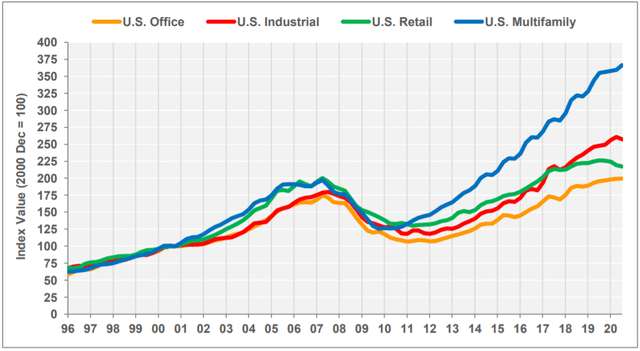 Private equity investors are long-term oriented and they can see past the covid crisis. Therefore, the value of commercial properties has barely changed in 2020: