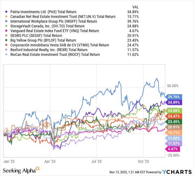 Ignoring RICK, nine out of ten of our picks earned market-beating returns, with the weakest performer (REXR) earning 2x higher returns and the strongest (IWG / IWGFF) earning about 10x higher returns than the VNQ ETF. Fortunately for us, that strongest performer happens to be our single-largest investment, representing 13% of our Core Portfolio.