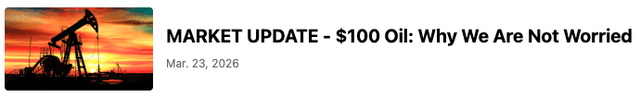 Moreover, $100+ oil is unlikely to persist over the long term. Higher prices incentivize increased production, governments are already tapping strategic reserves, and elevated gasoline prices will gradually erode demand. Both the EIA and futures markets expect oil prices to decline meaningfully over the coming year.