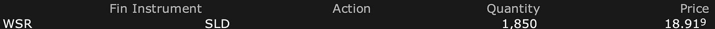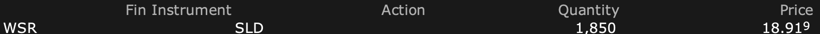 This closes our investment in WSR.
