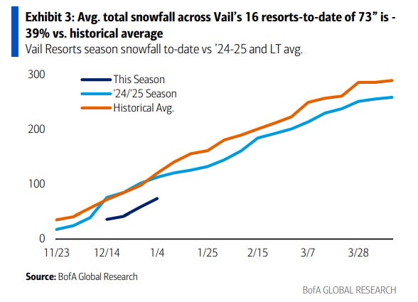 As a result, they could only open a fraction of the total terrain in December and January, and now expect their 2026 results to come below the low end of their guidance.