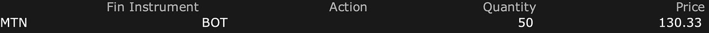I bought another 50 shares of Vail Resorts (MTN), increasing our position size by 50%.
