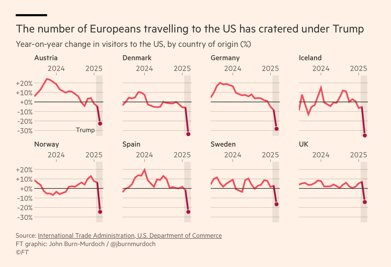 Travel and leisure companies are often suffering even more because they also rely on international tourists, many of whom are now boycotting trips to the US as a result of its current administration’s policies and rhetoric. This will likely only get worse before it gets better because of the recent threats to invade Greenland: