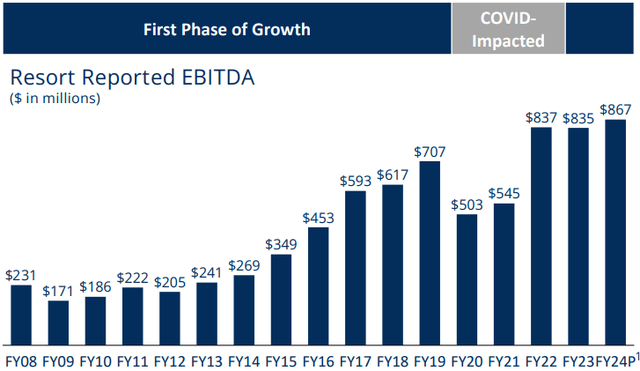 Yes, it is facing some near-term headwinds in a weakening consumer, a drop in international tourism, and poor snowfall. But even under these circumstances, it is still expected to earn only slightly less EBITDA this year than in 2025.