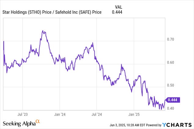 That's when I came across an analysis of Safehold (SAFE) vs. Star Holding (STHO), and it gave me the idea of selling our position in Safehold (SAFE) and redeploying the entire proceeds into Star Holding (STHO).