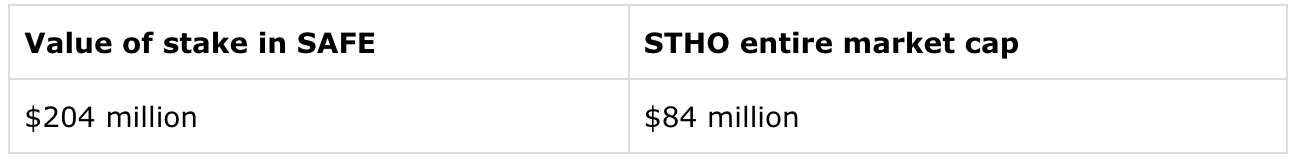 Today, the value of its stake in SAFE is $204 million, but STAR's entire market cap is less than half of that: