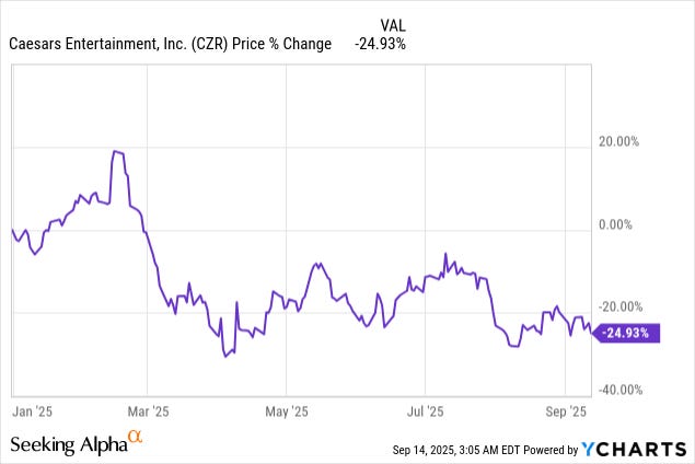This led to a soft summer for Las Vegas and caused CZR's stock to drop another 25%: