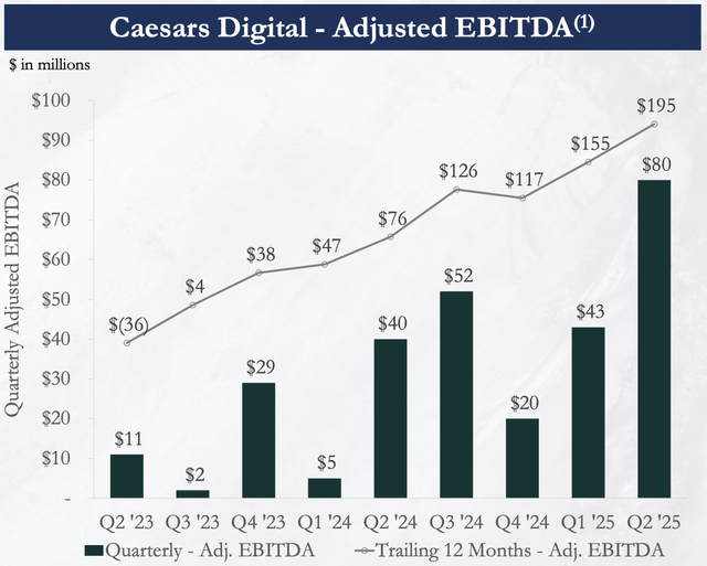 Most importantly, the company's digital business is exploding to the upside at the moment. In the second quarter, it had its biggest quarter ever by far, earning $80 million of adjusted EBITDA, and the management noted that they expect their digital business to earn $500+ million of adjusted EBITDA in 2026! That's up from $195 million over the trailing 12 months. Here is what their CEO said: