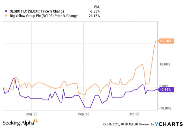 Note how much better Big Yellow has performed than Segro in the recent months: