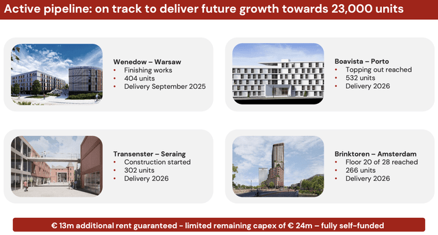 The company has a significant pipeline of new projects that are expected to come online later this year and in 2026, adding over 1,500 new units to its portfolio. This is expected to provide an additional €13 million in annual rent, and most of these projects have already been paid for, with just another €24 million of capex.
