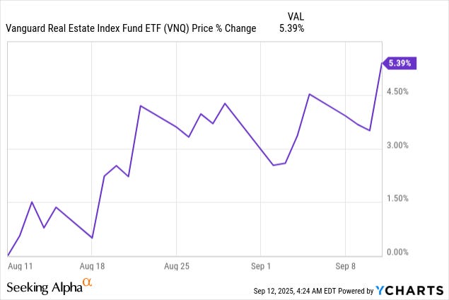 The US REIT market surged by 5.4% on average in the past weeks as it became increasingly clear that the Fed would soon resume rate cuts: