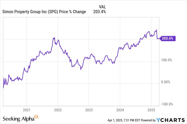 Now, looking back, we know that the market had overreacted. Class A malls are today producing higher sales per square foot than ever, and REITs like Simon Property Group (SPG) have strongly recovered and richly rewarded investors who had the courage to buy them when they were discounted: