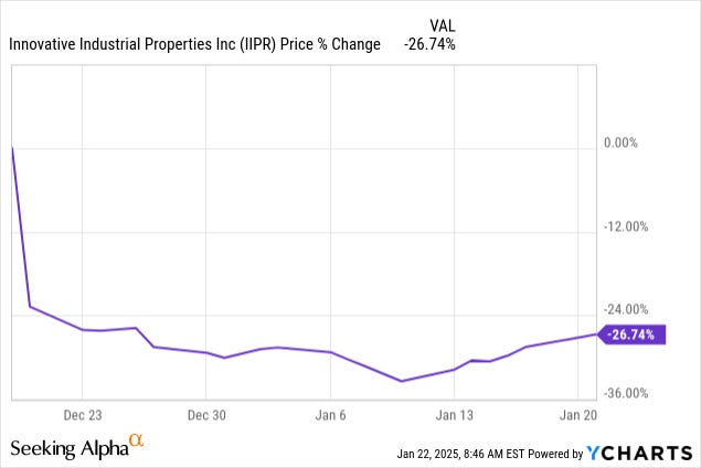 It has caused IIPR's share price to crash by 27% following the news: