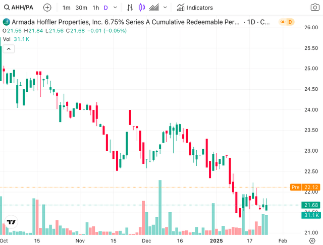 Today, we continue to take advantage of the dip in preferred equities to further diversify our Retirement Portfolio and boost its average yield by initiating a small position in the Series A preferred shares of Armada Hoffler Properties (AHH.PR.A).