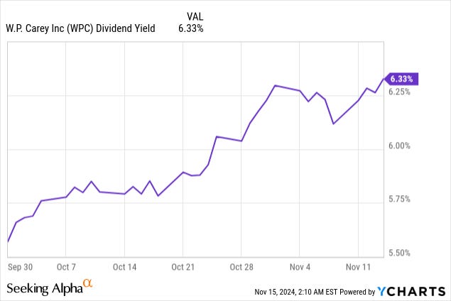 One in particular that comes to my mind right now is W.P Carey (WPC), which just crossed the 6% yield level after its recent dip: