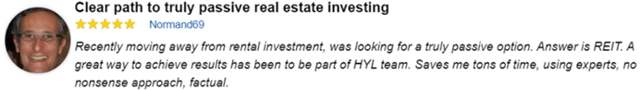 I am somewhat of a new REIT investor. What I like about HYL service is the write-ups are understandable and informative. I also like the transparency they offer. They share successes and those REITS that have not been as successful. Let's face it, every investment service has winners and losers and we know that. I like the information and all the tools the service provides. While I am only a few months into the service, I give it 5 stars so far!