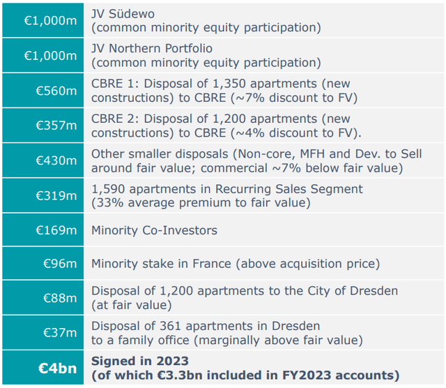 But the real big news is that Vonovia sold €4 billion worth of assets in 2023, which was 2x more than they had initially guided for, and they expect to sell another >$3 billion of assets in 2024 to pay off debt maturities and reduce leverage.