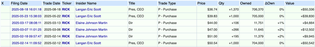 If RICK loses its top management, it will lead to great uncertainty in the near term. But it is also worth noting that RICK has not gotten much love for a while now, and a lot of the blame has been placed on the management for misallocating capital. Based on the latest market reaction, it appears that most investors now see this management team as a liability rather than an asset. If it were replaced, it could potentially lead to an even higher share price.