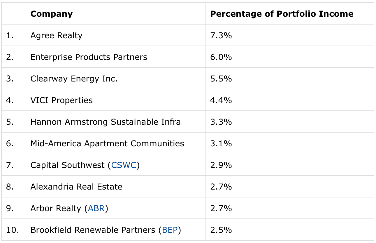 And just for fun, here are my top 10 holdings as a percentage of total annualized income: