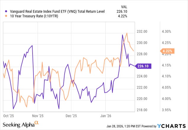 With the 10-year Treasury rate hovering around 4.25% as of this writing, interest rates remain a headwind to the REIT rebound, for now.