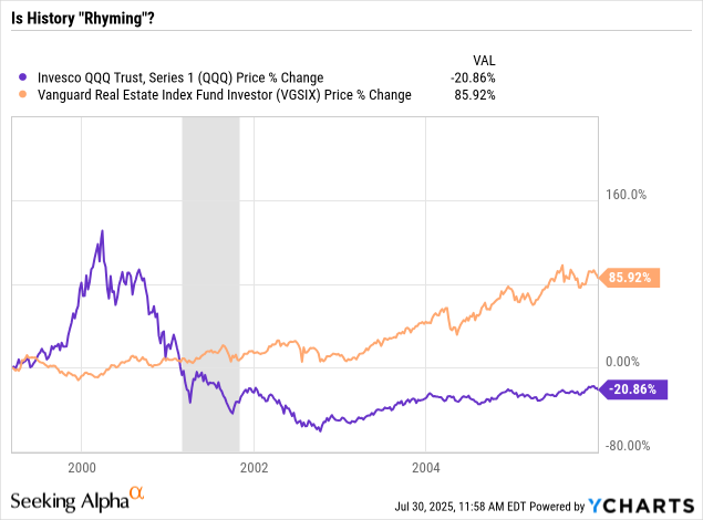 If this scenario plays out more or less as described above, then there's good reason to believe that history could "rhyme" over the next several years as it relates to REITs' underperformance versus high-growth tech.