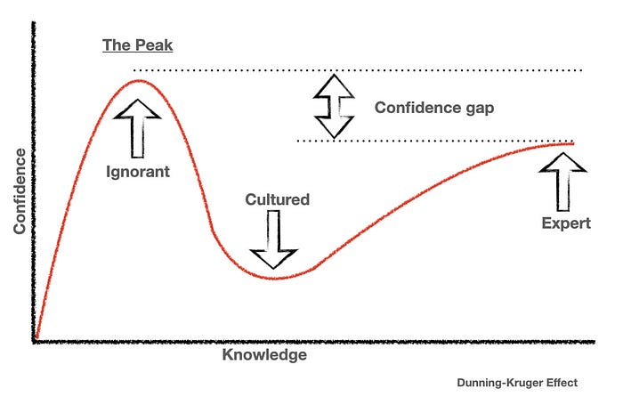 In investing, just as in any other field, the Dunning Kruger Effect holds true. This is the phenomenon wherein a person who just begins to gain knowledge on a subject quickly becomes overconfident in their level of knowledge.