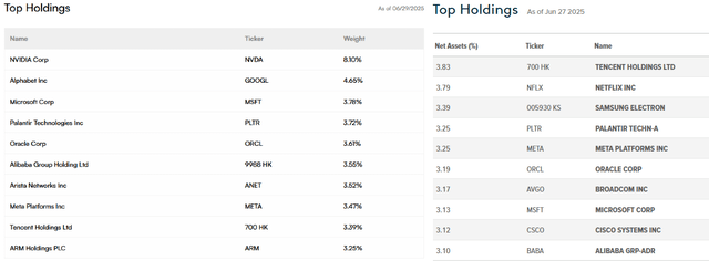 Below, on the left we see CHAT's top 10 holdings, and on the right we have AIQ's top 10 holdings: