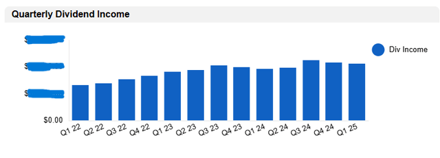 My Q1 2025 portfolio dividend income came in slightly lower than I expected, although this reading is as of March 31st. As usual, dividends/distributions from the Brookfield family (BAM, BIP, and BEP) take an extra day to hit my Vanguard account and don't show up yet despite technically being paid out at the end of the month.