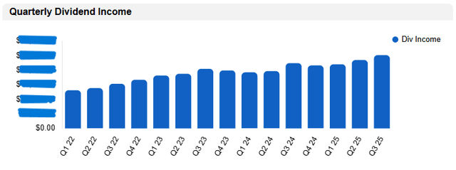 In Q3 2025, my total portfolio income grew 12.2% year-over-year and 7.1% quarter-over-quarter.