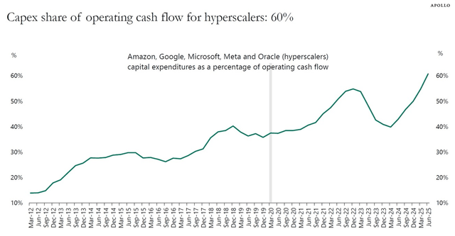 On the over-investment piece, consider the incredible fact that the largest 5 hyperscalers are now spending over 60% of their (considerable!) operating cash flow on capex: