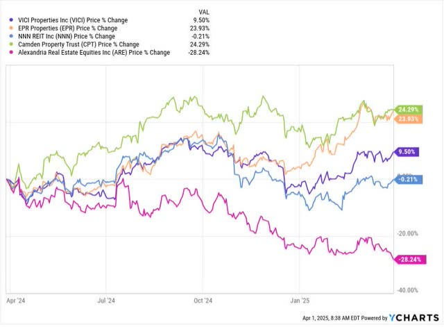 Still, Camden Property Trust (CPT) and EPR Properties (EPR) are up by a quarter over the year. Those two did turn in good results, in my view.
