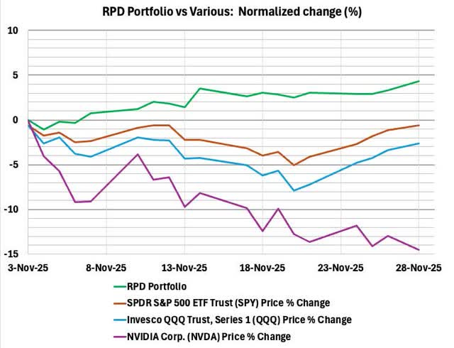 This is despite the fact that my portfolio “outperformed” the major indices in November, as you can see above. Doing that is not a focus or a goal for me.
