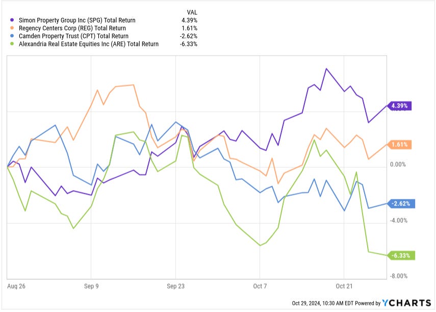 It still seems to me that many REITs have priced in the interest-rate cuts that have already happened, and maybe a few more. Going sideways from here for several months would not surprise me. Valuations overall seem high to me for today’s interest rates.